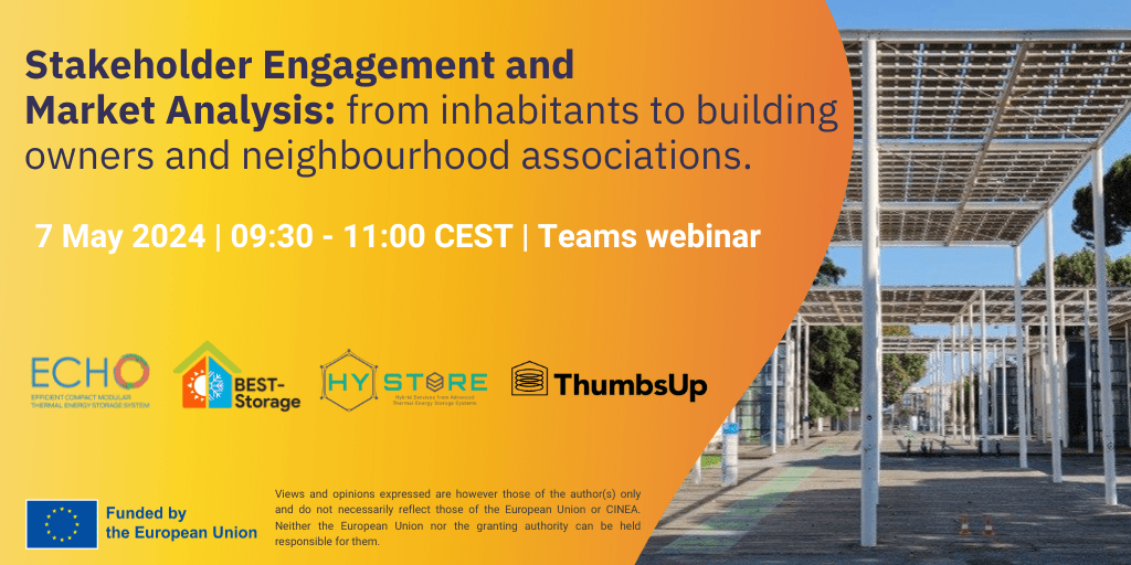 The Thermal Energy Storage (TES) Cluster invites you to a webinar featuring experts from our four EU-funded projects: ECHO, BEST-Storage, HYSTORE, and ThumbsUp. These projects are all working towards a cleaner and more resilient Europe by advancing energy efficiency, renewable energy integration, and sustainability.